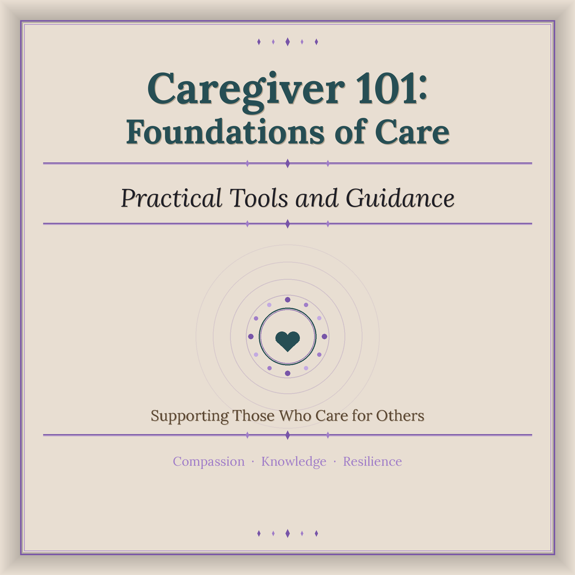 Foundations of caregiving with practical tools and guidance.