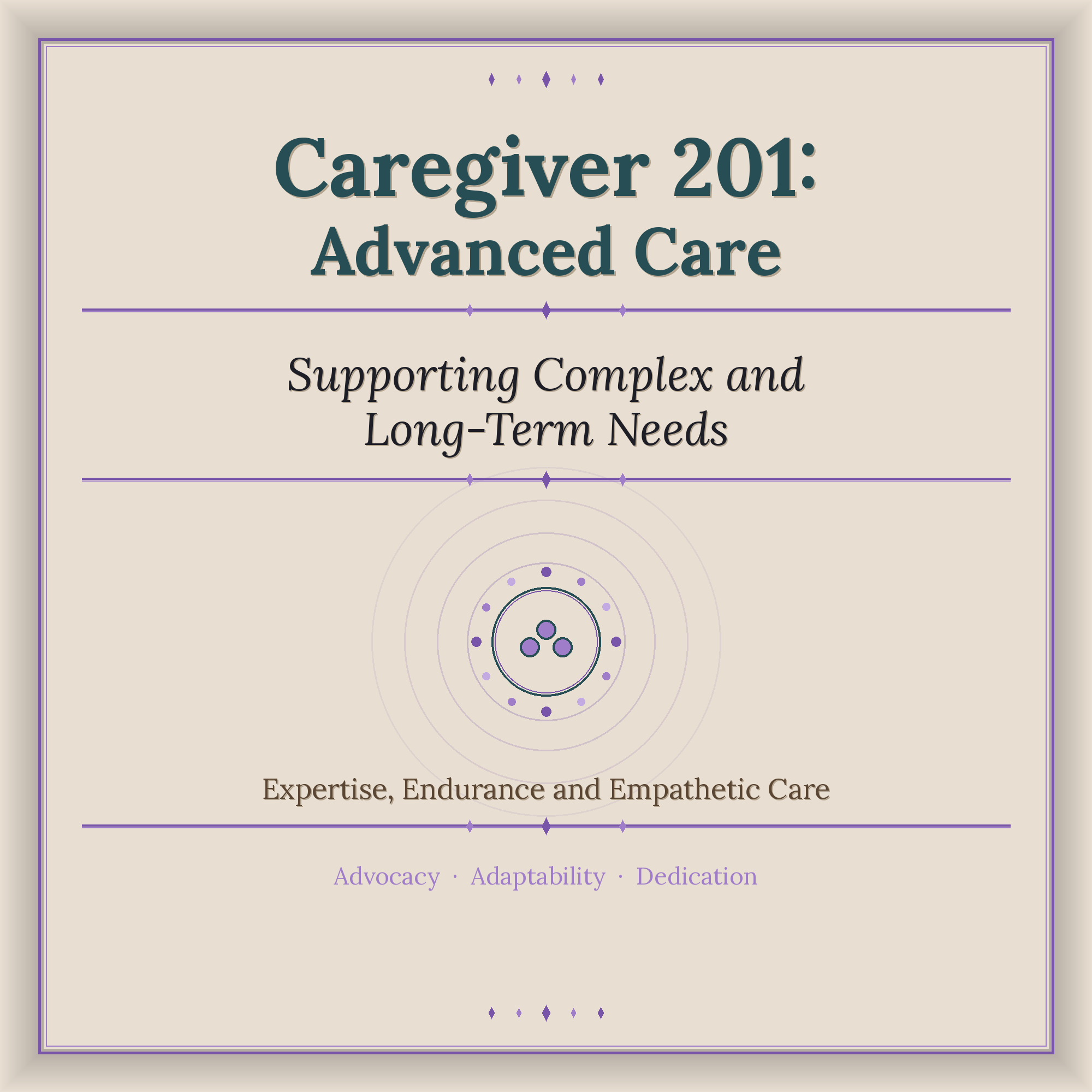 Advanced caregiving skills for complex and long-term support.